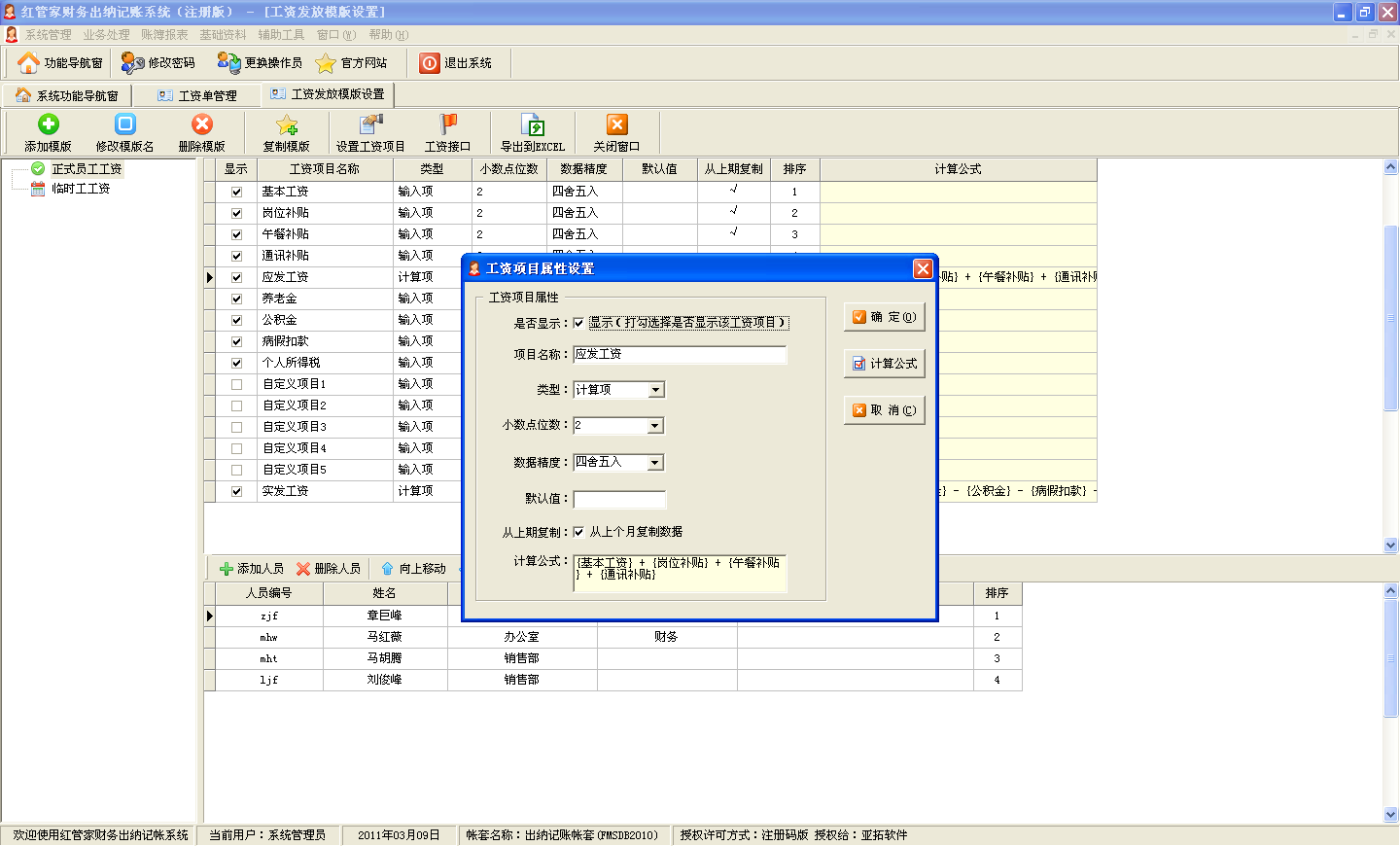 工資項目可自定義,并可設(shè)置計算公式