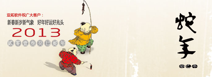 新年的腳步越來越近,值此2013年新春佳節(jié)來臨之際,鄭州亞拓信息技術有限公司(亞拓軟件)及公司全體員工,向所有關心、支持和幫助我們的朋友,致以最誠摯的節(jié)日問候,祝大家新春愉快、闔家幸福、身體健康、萬事如意!祝愿各位在新的一年里事業(yè)有成、財源廣進! 按照國務院2013年春節(jié)放假安排結合我司實際情況,我司2013年2月5日(農(nóng)歷十二月二十五)至2013