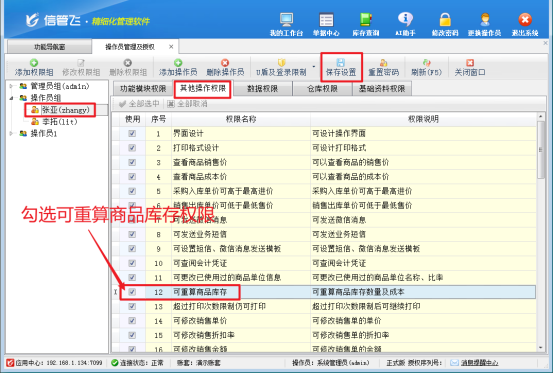 在企業(yè)運營里,倉庫就像物資流轉(zhuǎn)的“心臟”,其管理效率直接關(guān)乎企業(yè)的運營成本與市場競爭力。倉庫庫存查詢,通過實時更新庫存數(shù)據(jù),提供準(zhǔn)確的庫存信息,幫助企業(yè)隨時掌握商品庫存動態(tài)。然而在使用過程中,偶爾會遇到商品庫存數(shù)據(jù)不對的情況,這時系統(tǒng)自帶的重算庫存功能就能派上用場,它能重新梳理庫存數(shù)據(jù),讓數(shù)據(jù)恢復(fù)正常。但有些用戶在點擊重算時,會彈出“您沒有重算商品庫存的權(quán)限,請與系統(tǒng)管理員聯(lián)系!”的提示,這是由于操作員沒有權(quán)限導(dǎo)致。本篇文章詳細(xì)介紹下如何解決: 首先,使用系統(tǒng)管理員賬號登錄軟件,點擊功能導(dǎo)航窗,“