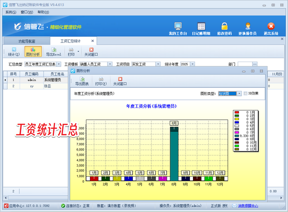 信管飛出納記賬軟件專為中小企業打造,其工資管理功能可高效解決薪資核算難題。支持根據公司架構自定義工資模板,無論是銷售崗的提成制、技術崗的項目制,還是管理崗的年薪制,均可靈活設置基本工資、績效獎金、社保公積金等項目,滿足多元化薪酬體系需求。 智能計算引擎大幅簡化操作流程,輸入基礎數據后,系統可自動根據工資模版精準核算應發/實發