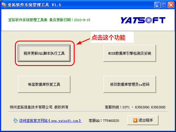 第二步、點(diǎn)擊“程序更新SQL腳本執(zhí)行工具”,進(jìn)入更新腳本窗口: