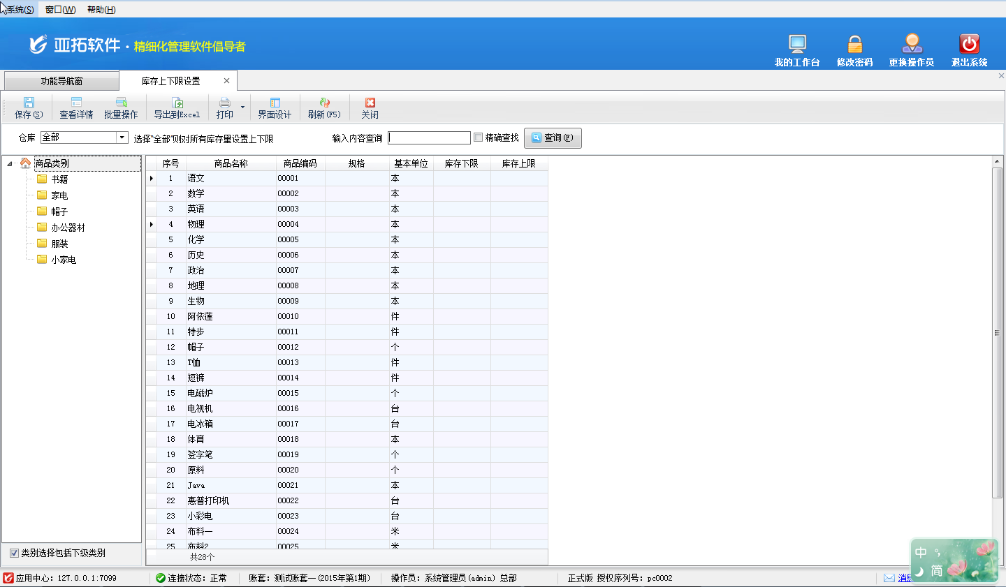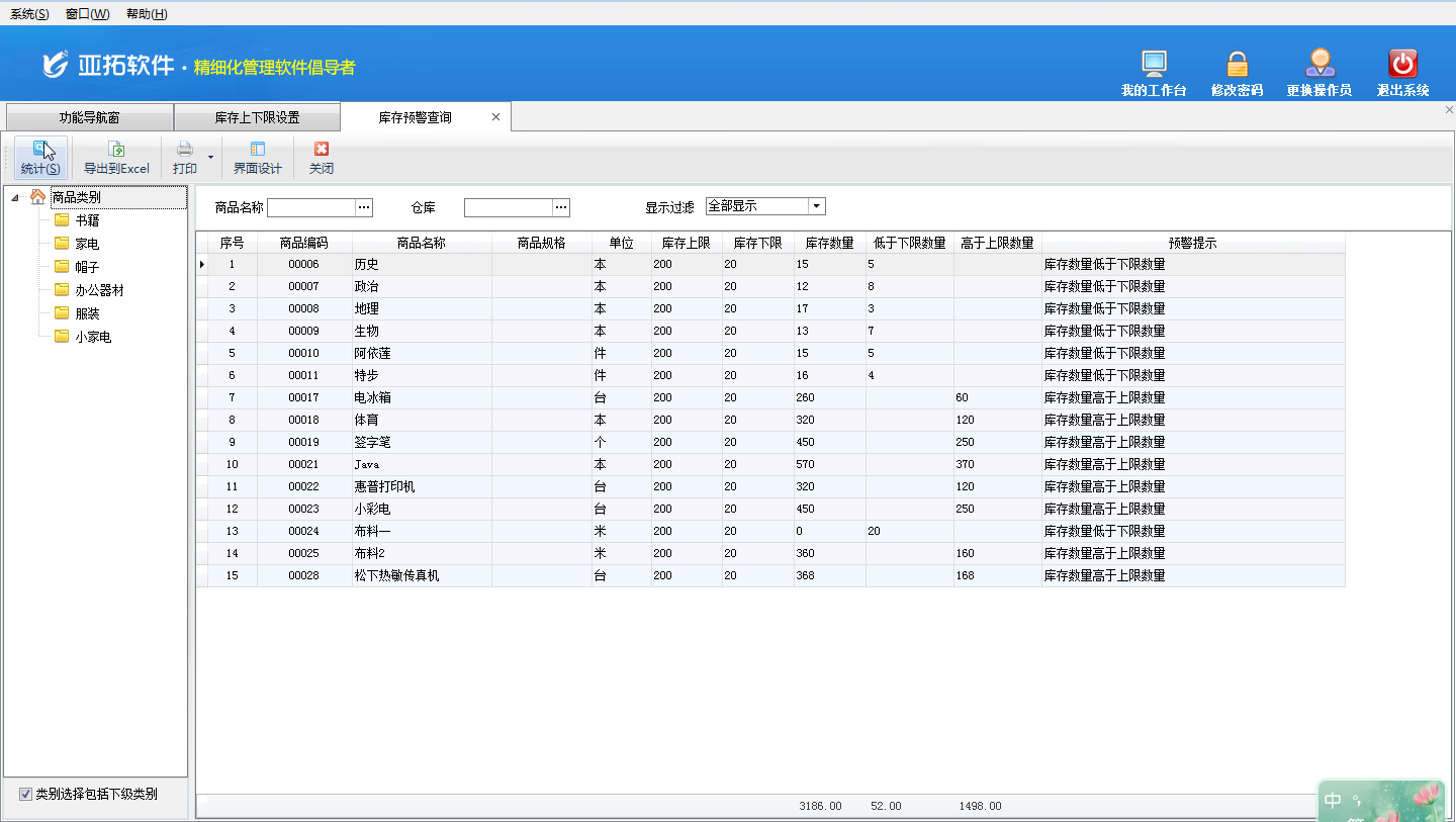 進銷存軟件中庫存上下限預警的使用方法