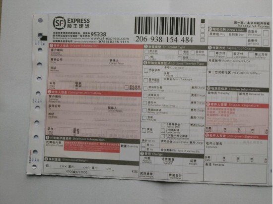 (2)通過手機拍照:如果不能進行掃描,那你就用手機或相機拍一張比較清晰的快遞單圖片(建議盡量用掃描儀掃描,拍攝的圖片效果不太好會影響打印效果),同時需要用尺子量一下快遞單的長度和寬度發給我們。拍攝時也要求放正且清晰,如果拍攝的照片或掃描的圖片是傾斜或者不完整的會造成打印出來的內容放置不準確,如下圖2、3所示: