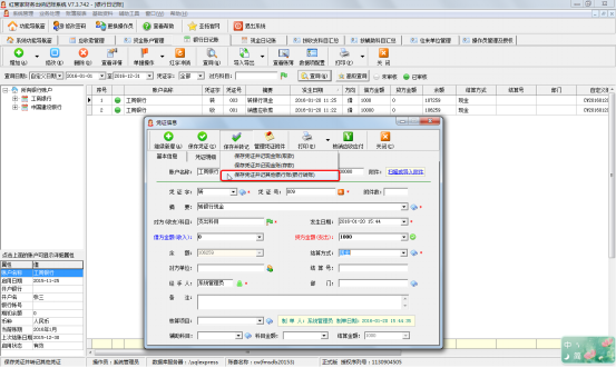 紅管家財(cái)務(wù)出納記賬軟件中可以記錄現(xiàn)金日記賬及銀行日記賬,并支持對(duì)銀行轉(zhuǎn)賬的情況記錄憑證,同城跨行轉(zhuǎn)賬、省內(nèi)異地同行轉(zhuǎn)賬、跨省異地同行轉(zhuǎn)賬、跨行異地轉(zhuǎn)賬等情況都有手續(xù)費(fèi)的情況,那么在含有手續(xù)費(fèi)的情況下該如何在財(cái)務(wù)出納記賬軟件中記錄憑證呢?
