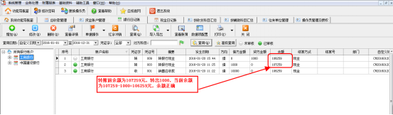 憑證保存成功后我們打開“工商銀行”查看工商銀行當(dāng)前余額為106259元(轉(zhuǎn)賬前余額為107259元,轉(zhuǎn)出金額1000元,轉(zhuǎn)賬后金額應(yīng)為106259元),當(dāng)前余額正確。如下圖五所示。