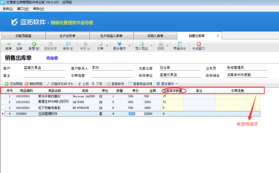 亞拓管理軟件、紅管家倉庫管理軟件都具有采購、銷售、庫存管理模塊,商品的出入庫如果可以實時查看到數量,則會更加方便管理商品的進銷存。亞拓管理軟件和紅管家倉庫管理軟件都支持讓出庫單、入庫單顯示當前庫存數量。下邊就以紅管家倉庫管理軟件專業版的銷售出庫單為例,講解一下如何顯示出當前商品的庫存數量。