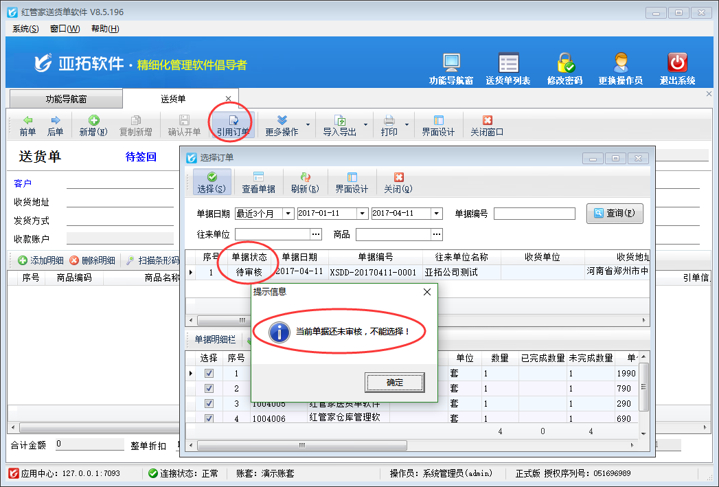 歡迎免費下載試用這款送貨單引單時可選擇未審核訂單送貨單打印軟件紅管家送貨單軟件。