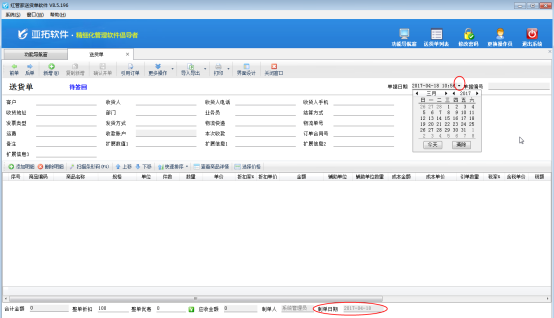 亞拓管理軟件、紅管家倉庫管理軟件及紅管家送貨單軟件開單時單據日期默認是電腦系統的當前日期,部分用戶有時需要補錄以前漏開的單據,就需要進行補單,如何補錄以前的單據呢?本篇文章以紅管家送貨單軟件為例詳細介紹一下送貨單軟件內如何補錄以前的送貨單單據?
