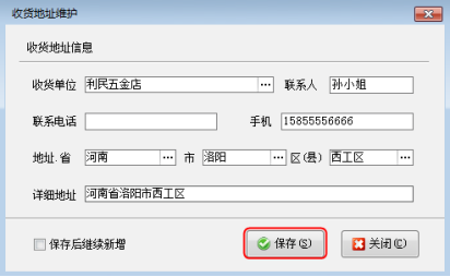 如圖2所示,點擊“添加地址”按鈕,系統(tǒng)彈出“收貨地址維護”窗口,選擇一下收貨單位。然后錄入一下地址信息,如圖3所示,錄入信息后保存。保存后可以在收貨地址界面看到剛才新增的地址記錄,如圖4所示。