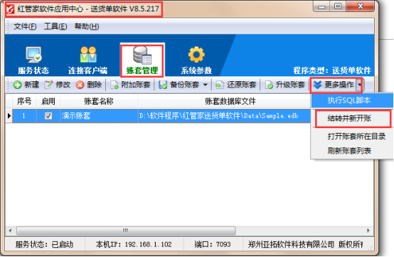 紅管家送貨單軟件、亞拓管理軟件等支持對賬套進(jìn)行結(jié)轉(zhuǎn)新開賬操作。結(jié)轉(zhuǎn)新開賬一般用于年底結(jié)存新開賬,該結(jié)存操作不是必需的,如需要跨年查詢,可以不進(jìn)行年結(jié)轉(zhuǎn),軟件支持多年賬處理。