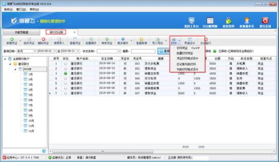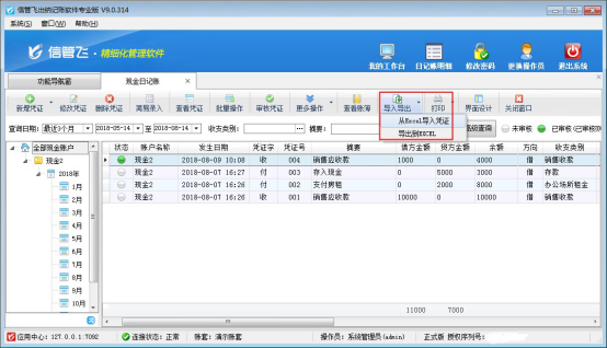很多剛學出納的學員都需要找一些出納電腦記賬表格、出納記賬表、出納記賬表格模板、出納Excel流水賬表格等出納相關記賬表格,以方便按照表格模塊進行記賬。信管飛出納記賬軟件中包含豐富的記賬統(tǒng)計表格,比如日記賬表格、現(xiàn)金銀行賬簿、資金日(月)報表等等,可以通過軟件中的導出為Excel功能,生成記賬表格或者直接在出納軟件中把記賬記錄打印出表格下面就給大家介紹下如何導出和打印這些記賬表格。