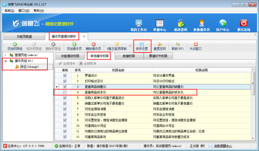 進銷存管理軟件內如何設置操作員不可查看商品成本價?