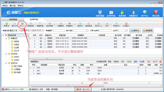 如果需要操作員不可刪除送貨單,軟件也支持設置操作員不可刪除送貨單權限,下面以來演示一下設置操作員不可刪除送貨單權限的操作步驟。