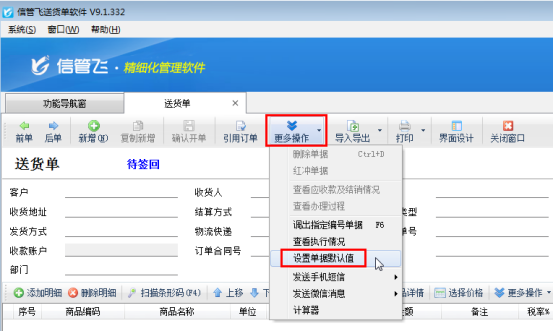 下面我們以信管飛送貨單軟件為例詳細(xì)介紹下如何設(shè)置單據(jù)默認(rèn)值。