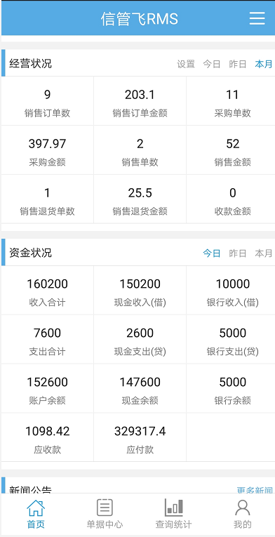 信管飛RMS支持手機(jī)APP登錄進(jìn)行業(yè)務(wù)開單、庫(kù)存查詢等操作,另外在APP首頁也可以查看經(jīng)營(yíng)狀況及資金狀況,如下圖所示。如果需要設(shè)置操作員賬號(hào)登錄不可在APP首頁查看資金狀況,如何設(shè)置呢?下面詳細(xì)介紹一下操作過程。