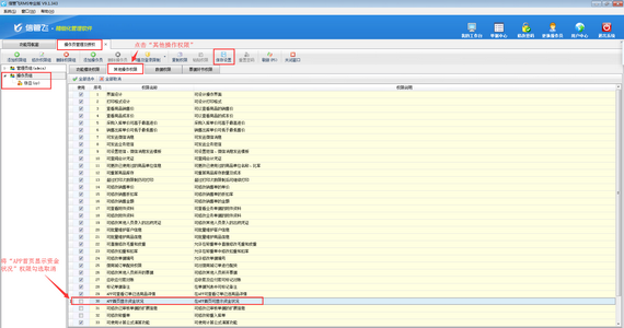 在功能導(dǎo)航窗點(diǎn)擊“系統(tǒng)管理”—》“操作員及授權(quán)”,進(jìn)入“操作員管理及授權(quán)”界面,選擇操作員賬號(hào),然后在“其他操作權(quán)限”界面將“APP首頁顯示資金狀況”權(quán)限勾選取消,然后保存權(quán)限設(shè)置,如下圖所示,設(shè)置操作員“張亞”APP首頁不可顯示資金狀況。