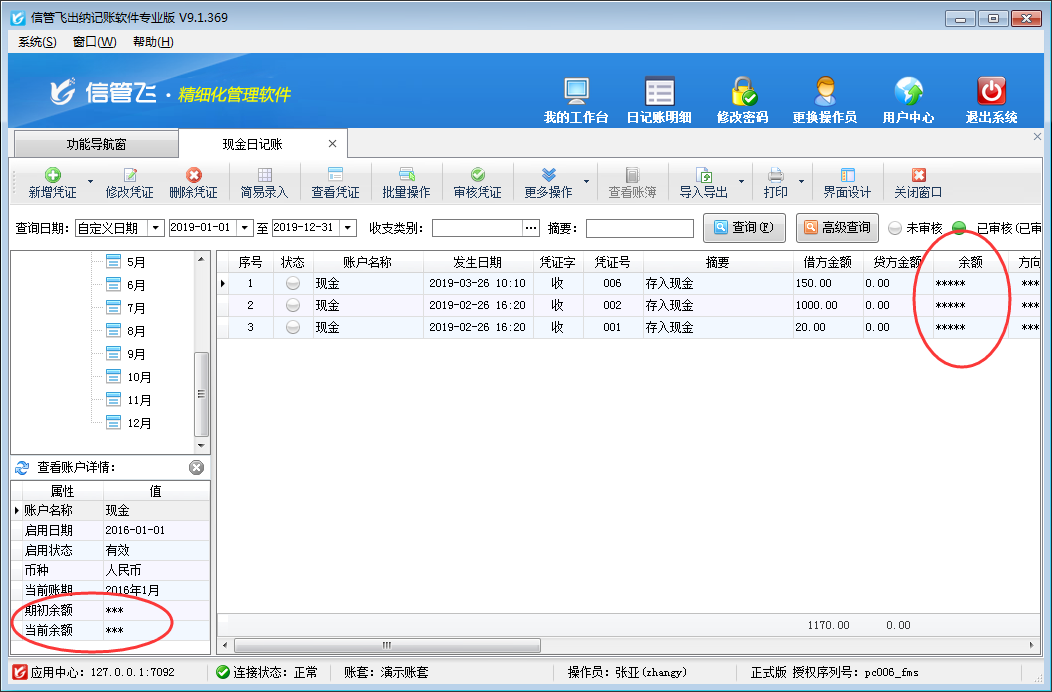 歡迎免費(fèi)下載試用這款可以設(shè)置操作員不可查看出納日記賬資金賬戶余額的流水賬記賬軟件:信管飛出納記賬軟件。