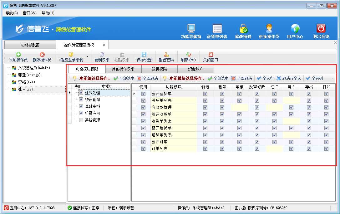 歡迎免費下載試用這款可設置多個操作員賬號登錄的送貨單軟件:信管飛送貨單軟件。