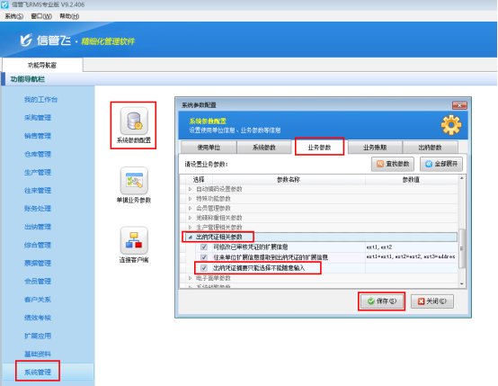 在功能導航窗點擊“系統(tǒng)管理”——》“系統(tǒng)參數(shù)配置”——》“業(yè)務參數(shù)”可以進入到“業(yè)務參數(shù)”配置界面,在出納憑證相關參數(shù)內打勾啟用“出納憑證摘要只能選擇不能隨意輸入”參數(shù),如下圖1所示。
