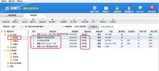 然后到“打印機”類別下從新查看商品信息,剛才的4個商品類別都已經(jīng)改變了,其界面如圖3所示。