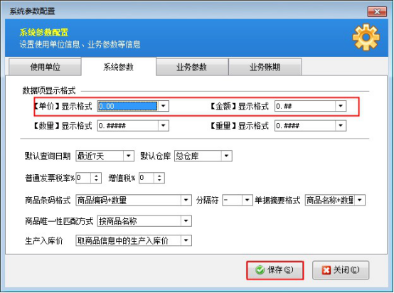 示例:單價為12.25在系統參數中對“單價”、“金額”選擇相應的顯示格式后點擊“保存”按鈕即可,在軟件中這些數據項的顯示格式會改變。如圖3所示設置后,在圖4的送貨單界面可看到相應的數據項的顯示格式。