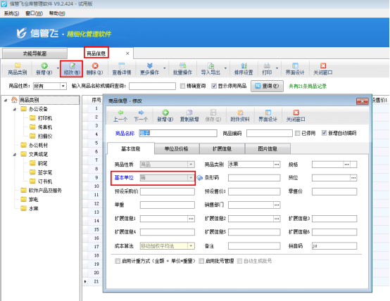 倉庫管理軟件如何修改已使用商品的基本單位?