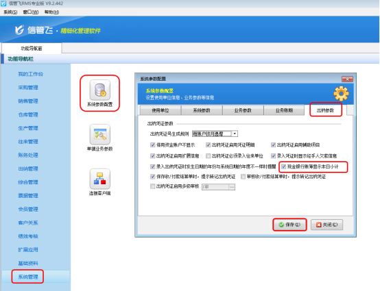 信管飛RMS標準版和專業版都包括出納模塊,可以登記現金銀行日記賬憑證,都可查看現金銀行賬簿,賬簿是仿真帳頁顯示,并支持打印輸出、導出成Excel文件、可調整顯示比例。現金銀行賬簿中默認顯示本日小計,為了滿足不同客戶的需求,賬簿中是否顯示本日小計,可以在軟件中進行設置。下面我們以信管飛RMS專業版的現金賬簿為例,講一下如何使用參數“現金銀行賬簿顯示本日小計”。