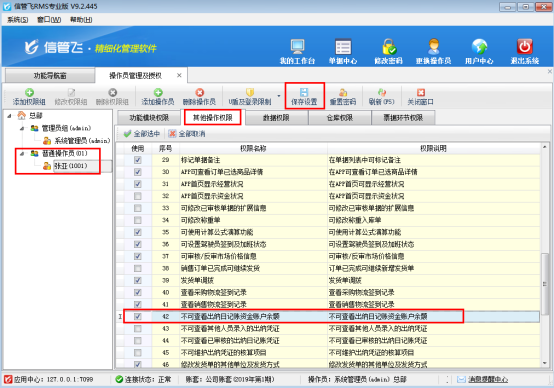 注意:設置操作員不可查看出納日記賬資金賬戶余額權限為V9.1.369版本增加的功能,如需要使用此功能,需升級到最新版。