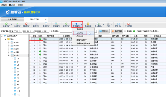 信管飛RMS標(biāo)準(zhǔn)版和專業(yè)版都包括登記出納日記賬憑證功能,在新增保存日記賬憑證后都可以直接審核憑證,憑證審核后,不允許直接刪除。客戶如果需要?jiǎng)h除已審核的憑證,需要先反審憑證,再進(jìn)行刪除。下面我們介紹一下在信管飛RMS專業(yè)版中如何刪除已審核的日記賬憑證?