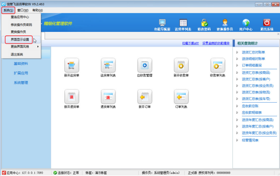 登錄軟件界面,在左上角的“系統(tǒng)”按鈕下選擇“界面顯示設(shè)置”可進(jìn)入界面顯示設(shè)置窗口。如下圖2所示: