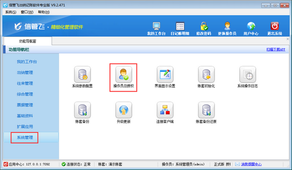 歡迎免費(fèi)下載試用這款支持設(shè)置操作員權(quán)限的出納記賬軟件:信管飛出納記賬軟件。