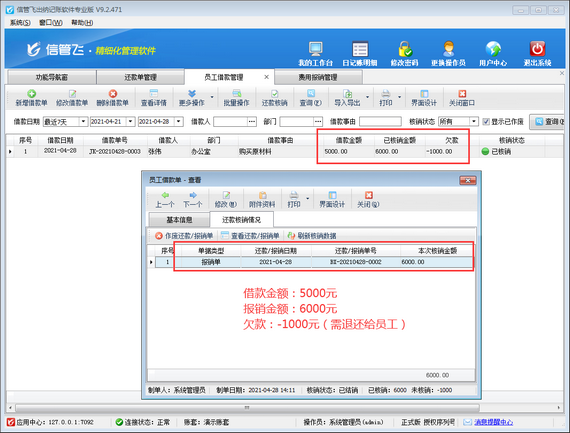 歡迎免費下載試用這款支持員工借款及還款管理的出納記賬軟件:信管飛出納記賬軟件。