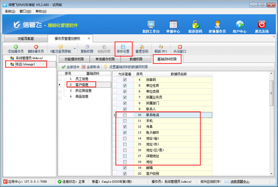 以信管飛RMS標準版為例,介紹一下,進銷存管理軟件如何設(shè)置操作員不可查看客戶的聯(lián)系電話及地址相關(guān)信息。