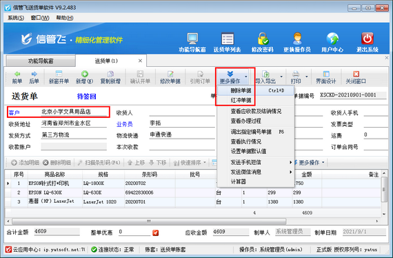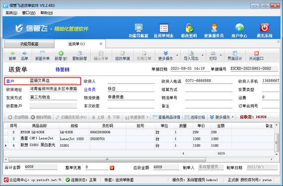 信管飛送貨單軟件是一款針對中小型企業開發的集送貨管理、應收款管理等為一體的送貨單打印軟件。使用軟件時如果送貨單確認開單后,發現客戶名稱有誤,系統不支持直接修改,那么該如何處理呢?