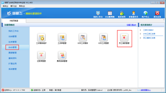 在功能導(dǎo)航窗點(diǎn)擊“綜合管理”—》“員工借款管理”即可進(jìn)入“員工借款管理”界面,如下圖所示: