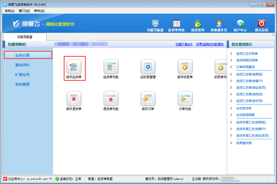 在功能導航窗點擊“業(yè)務處理”—》“新開送貨單”打開送貨單,錄入單據信息。如下圖所示: