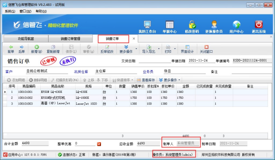信管飛系列軟件支持新增操作員和設(shè)置操作員權(quán)限,軟件可登錄多個操作員,為避免操作員之間開的訂單被修改,軟件支持控制操作員不能修改其他人開的訂單,本文以“信管飛倉庫管理軟件銷售訂單”為例,示范如何控制操作員不能修改其他人開的訂單。