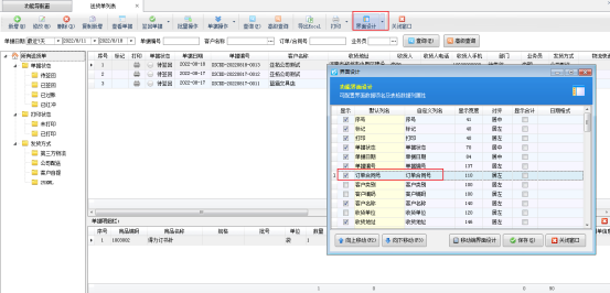 點擊送貨單列表,進入送貨單列表界面,界面設計勾選出訂單合同號,點擊保存按鈕。送貨單列表界面即可顯示出訂單合同號。