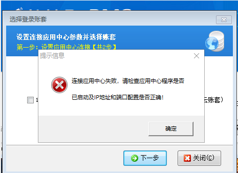 軟件登陸時系統提示“連接應用中心失敗,請檢查......”如何處理?