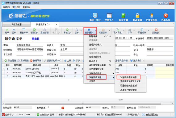 推送微信消息接收人員支持推送給業(yè)務(wù)員、客戶,系統(tǒng)內(nèi)支持邀請(qǐng)業(yè)務(wù)員及客戶綁定微信賬號(hào),業(yè)務(wù)員及客戶綁定微信賬號(hào)后,在軟件內(nèi)開單時(shí)即可對(duì)業(yè)務(wù)員及客戶綁定微信賬號(hào)推送業(yè)務(wù)單據(jù)消息。本篇文章介紹一下如何設(shè)置自動(dòng)發(fā)送微信消息?