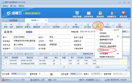 預覽界面會顯示空白行,不會有多少打印多少,需要調整打印模板,在開單界面“打印”按鈕下選擇“打印格式設計”進入“打印模板設計界面”,點擊“設計格式”可進入模板設計器界面。如下圖所示: