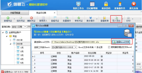 信管飛出納記賬軟件是集現金日記賬、銀行日記賬、應收應付往來賬管理、票據管理(支票管理、承兌匯票管理)、發票管理、工資管理、員工借款管理、費用報銷管理等為一體的財務出納管理記賬軟件(出納管理軟件)。日記賬憑證支持直接新增,也可以批量導入。對使用軟件之前的憑證需要錄入可以通過批量導入方式進行錄入。
