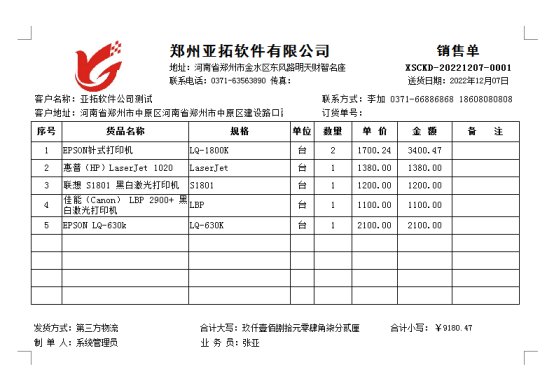 亞拓軟件旗下的信管飛送貨單軟件、信管飛RMS軟件、信管飛倉庫管理軟件,都支持開單打印單據,軟件中內置了十幾種打印模板供客戶選擇使用,也支持自定義設計打印模板,軟件內置打印模板設置自動增加空行,根據客戶需要模板不顯示空白行,我們以送貨單軟件為例設置下打印模板根據單據明細顯示打印行數。未調整前打印預覽顯示如下圖: