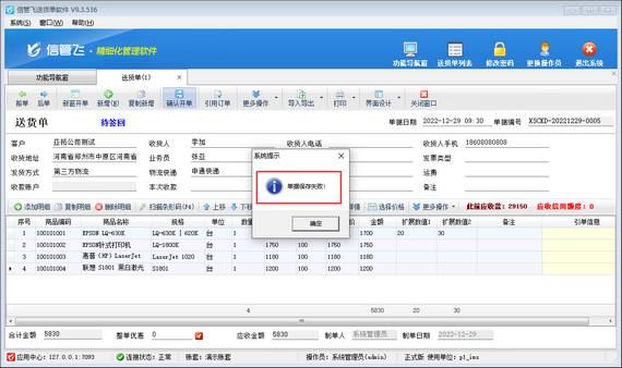 部分用戶在登記送貨單時,會出現“單據保存失敗!”的情況,如下圖所示。