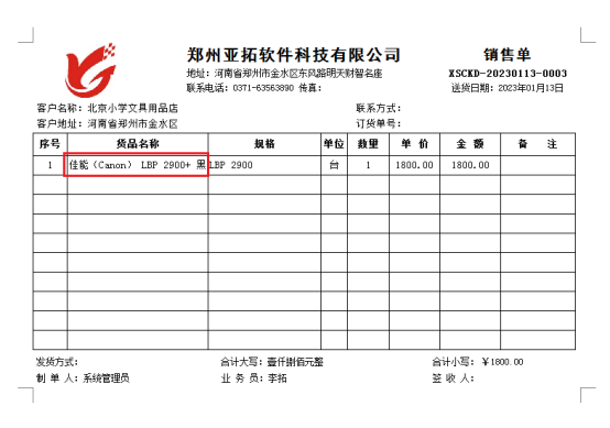 在功能導航窗點擊“業務處理”—》新開送貨單,先新開一個單據,確認開單后點擊打印預覽,如果商品名稱文字過長時打印會顯示不全,如下圖所示: