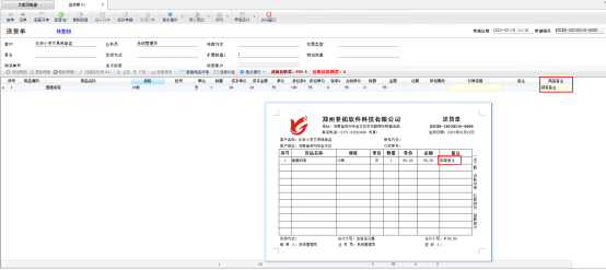 設(shè)置完成后,點(diǎn)擊保存,預(yù)覽界面可以看到顯示的商品備注信息和單據(jù)界面商品備注信息顯示一致,如下圖所示: