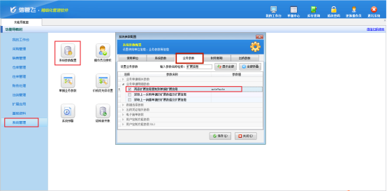 在功能導(dǎo)航窗點(diǎn)“系統(tǒng)管理”—》“系統(tǒng)參數(shù)配置”進(jìn)入“系統(tǒng)參數(shù)配置”界面,業(yè)務(wù)參數(shù)下找到“業(yè)務(wù)單據(jù)明細(xì)參數(shù)”,勾選“商品擴(kuò)展信息復(fù)制到單據(jù)擴(kuò)展信息”,參數(shù)值輸入相應(yīng)提取的備注信息,需要輸入“note=note”,設(shè)置后點(diǎn)擊“保存”按鈕。