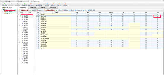 出現此問題的原因一般是操作員登錄時沒有勾選單據打印權限導致的,未設置打印權限前打印按鈕顯示灰色,如圖所示: