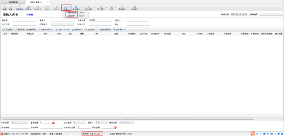 系統管理員登錄,可以看到開采購入庫單界面可以正常引用銷售訂單開單,用操作員賬號張亞登錄,采購入庫單則無法引單銷售訂單,如圖所示: