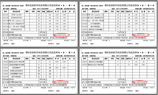 設(shè)置之后,保存模板,點擊預(yù)覽可以查看打印效果,每頁都會顯示金額小計,如圖所示: